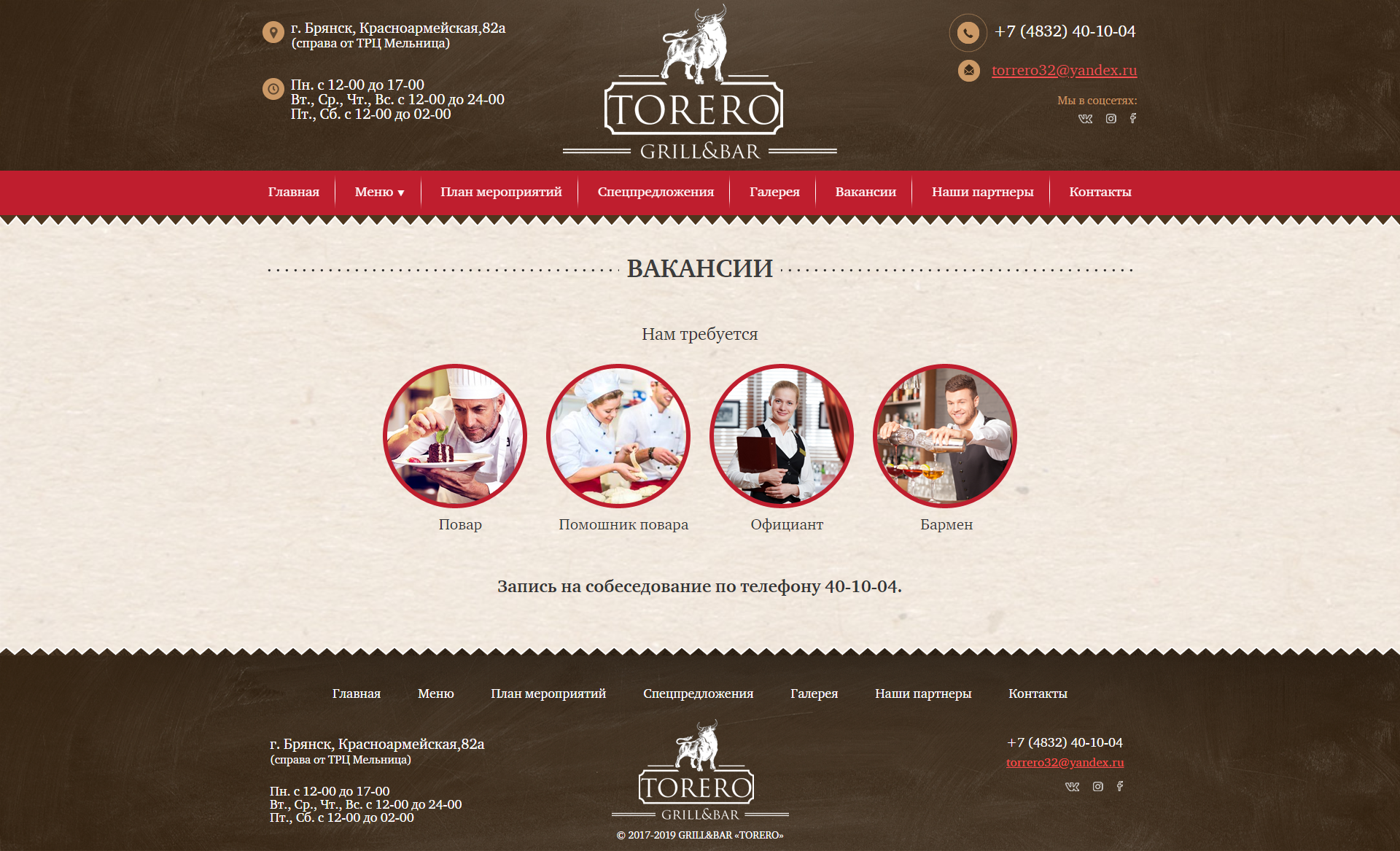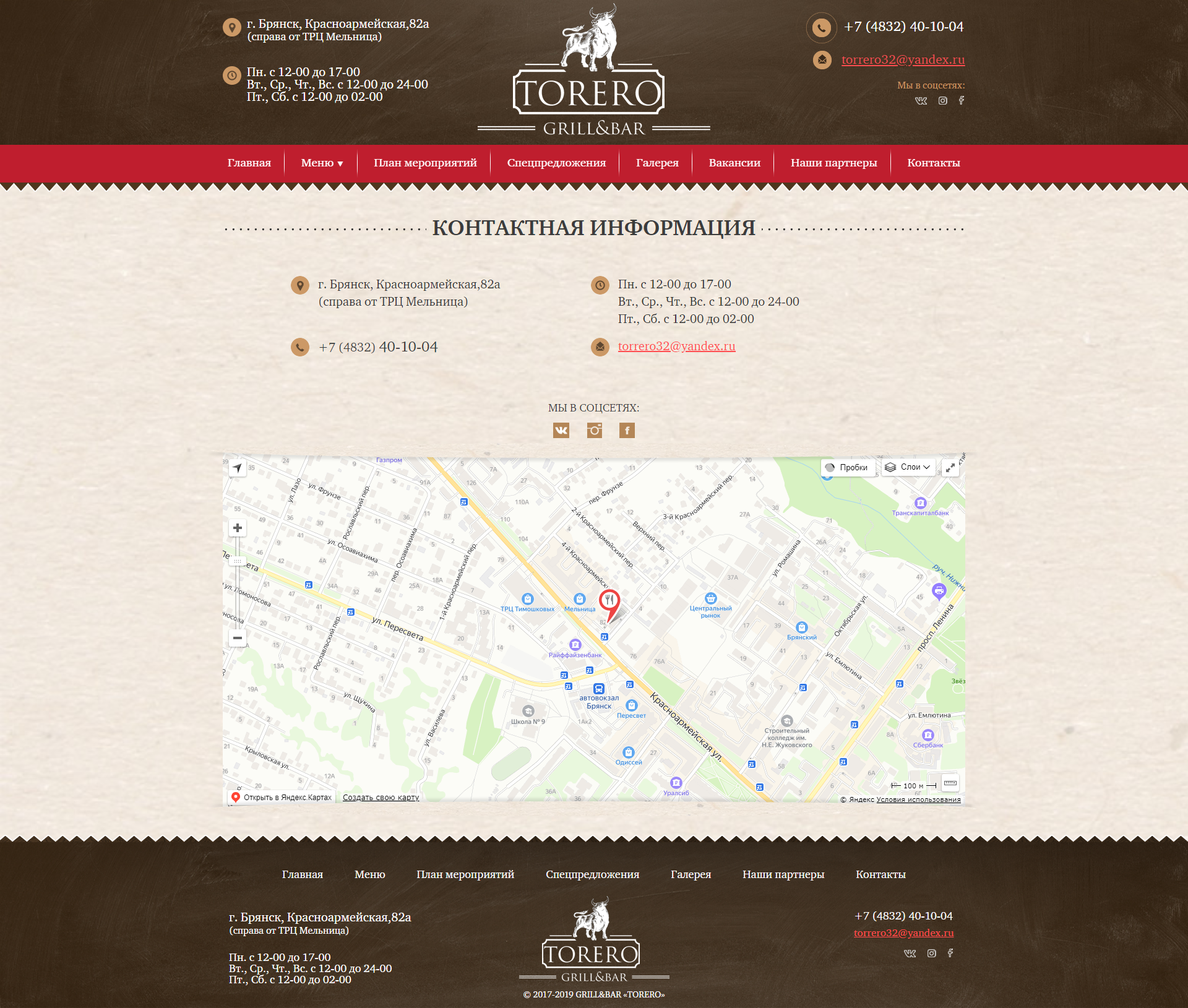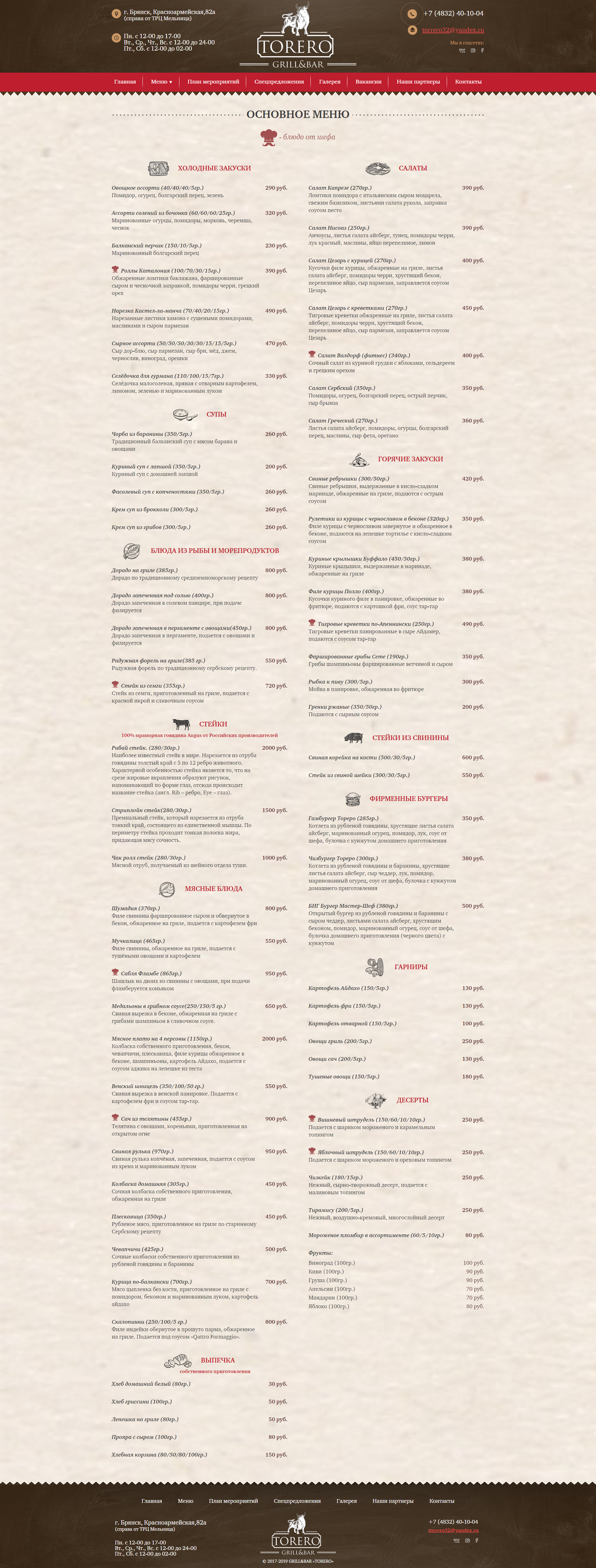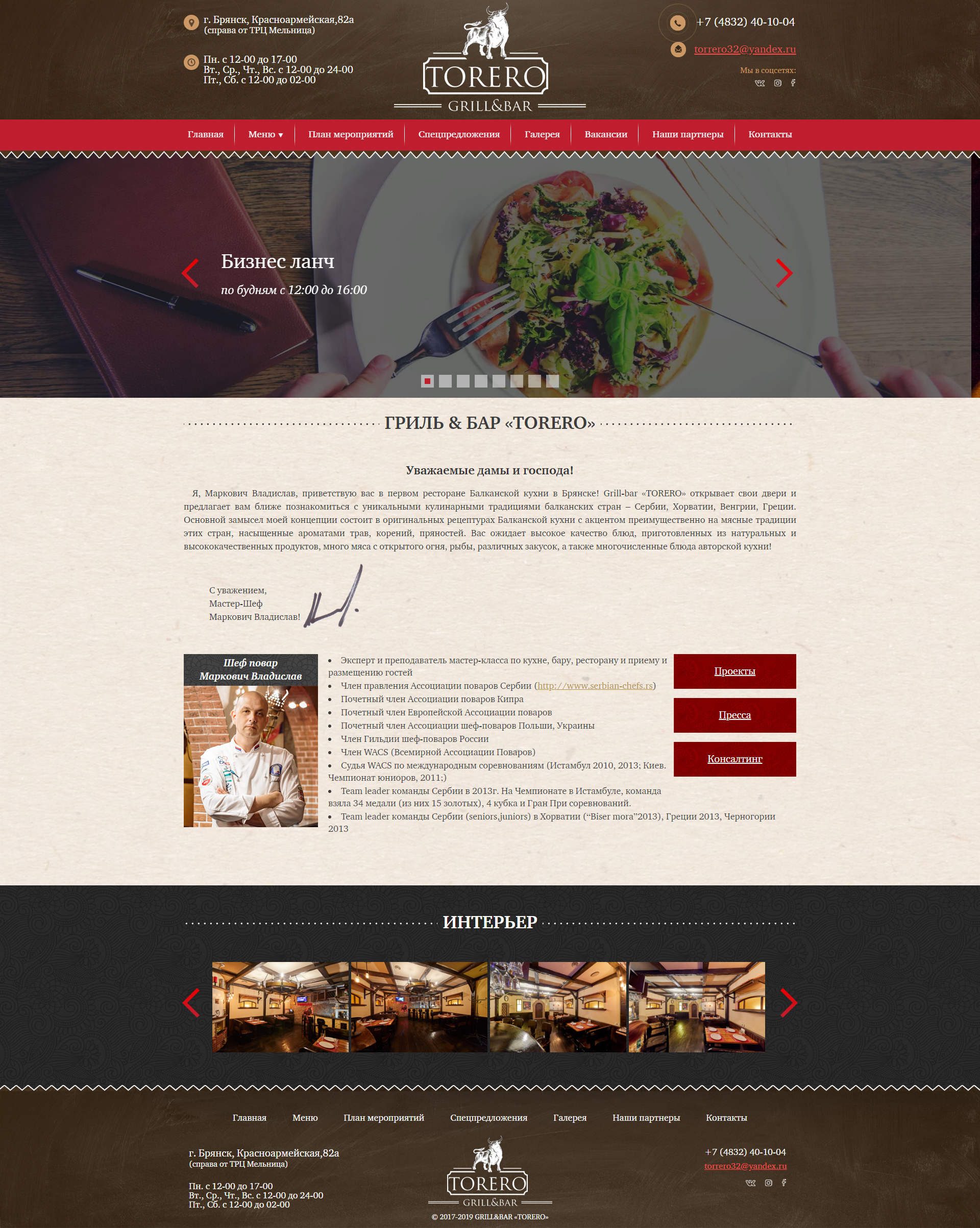 Главная > Портфолио > Сайт-визитка - Гриль & Бар «TORERO»